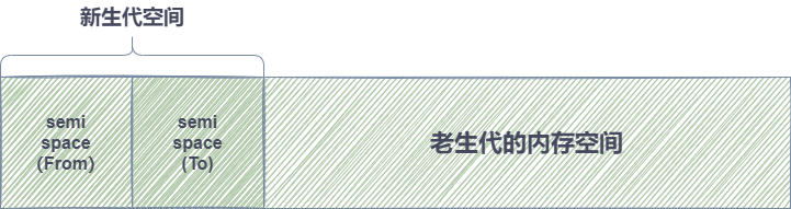 Scavenge 是一种复制算法,新生代空间会被一分为二划分成两个相等大小的 from-space 和 to-space。