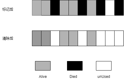 Mark-Sweep在标记阶段遍历堆中所有对象,并标记或者的对象,在随后的清除阶段,只清除没有标记的对象。