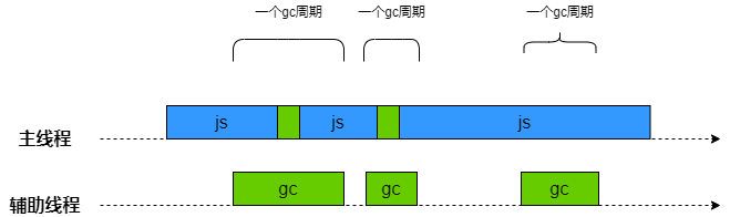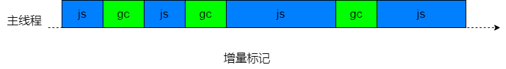 增量标记在堆的大小达到一定的阈值时启用,启用之后每当一定量的内存分配后,脚本的执行就会停顿并进行一次增量标记。