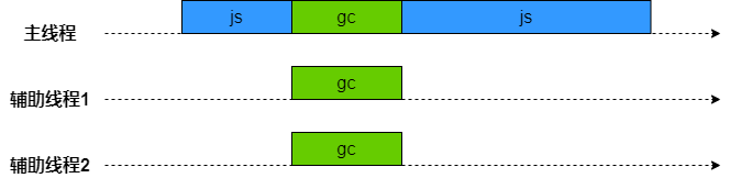 并行式GC允许主线程和辅助线程同时执行同样的GC工作,这样可以让辅助线程来分担主线程的GC工作,使得垃圾回收所耗费的时间等于总时间除以参与的线程数量(加上一些同步开销)。