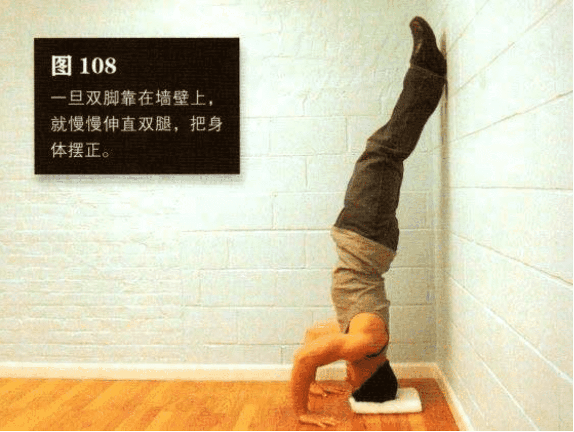 一旦双脚靠在墙壁上,就慢慢伸直双腿,把身体摆正(图 108)。