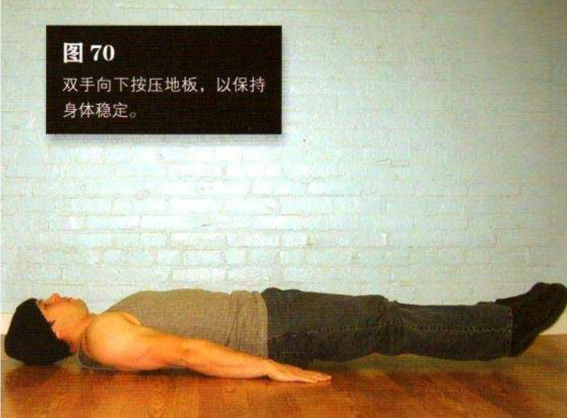 双手向下按压地板,以保持身体稳定。这是该动作的起始姿势(图 70)。